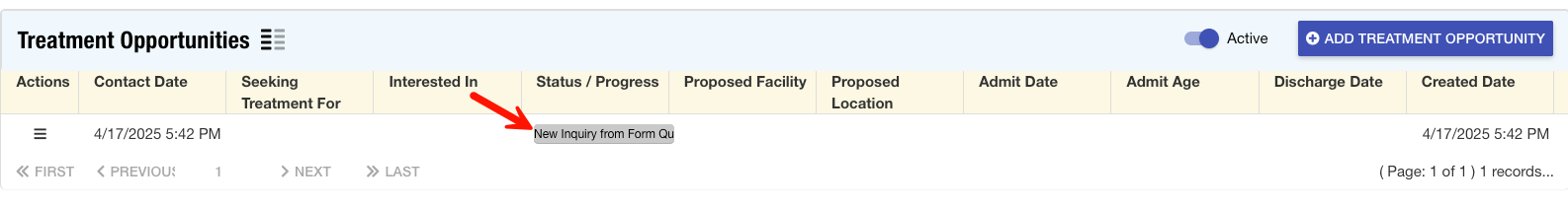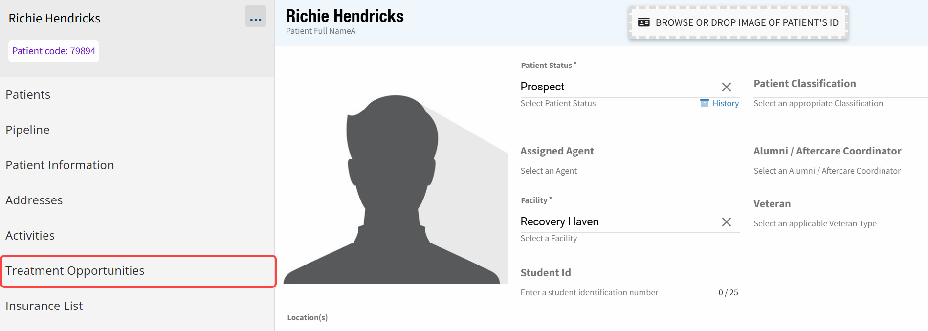 A Treatment Opportunity is the key to managing a potential patient’s journey before admission. It helps admissions staff: