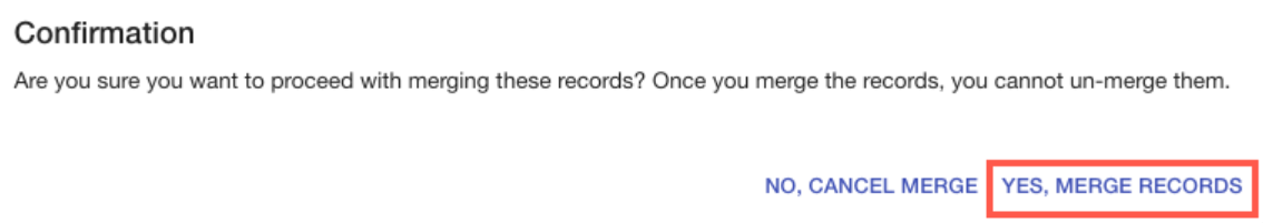 - Confirm by selecting Yes, Merge Records.