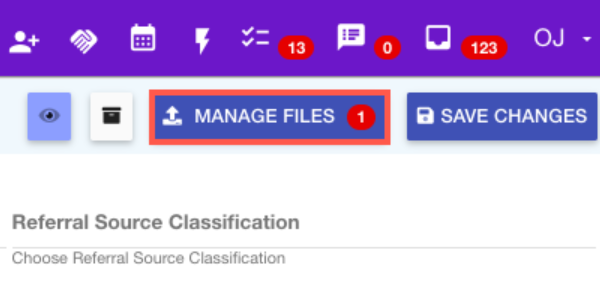- Open the record and click Manage Files.