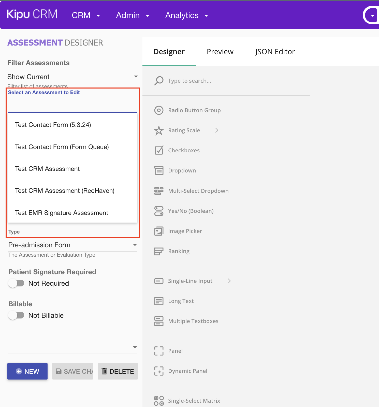 Kipu CRM, Roles: N/A | Assessment Designer