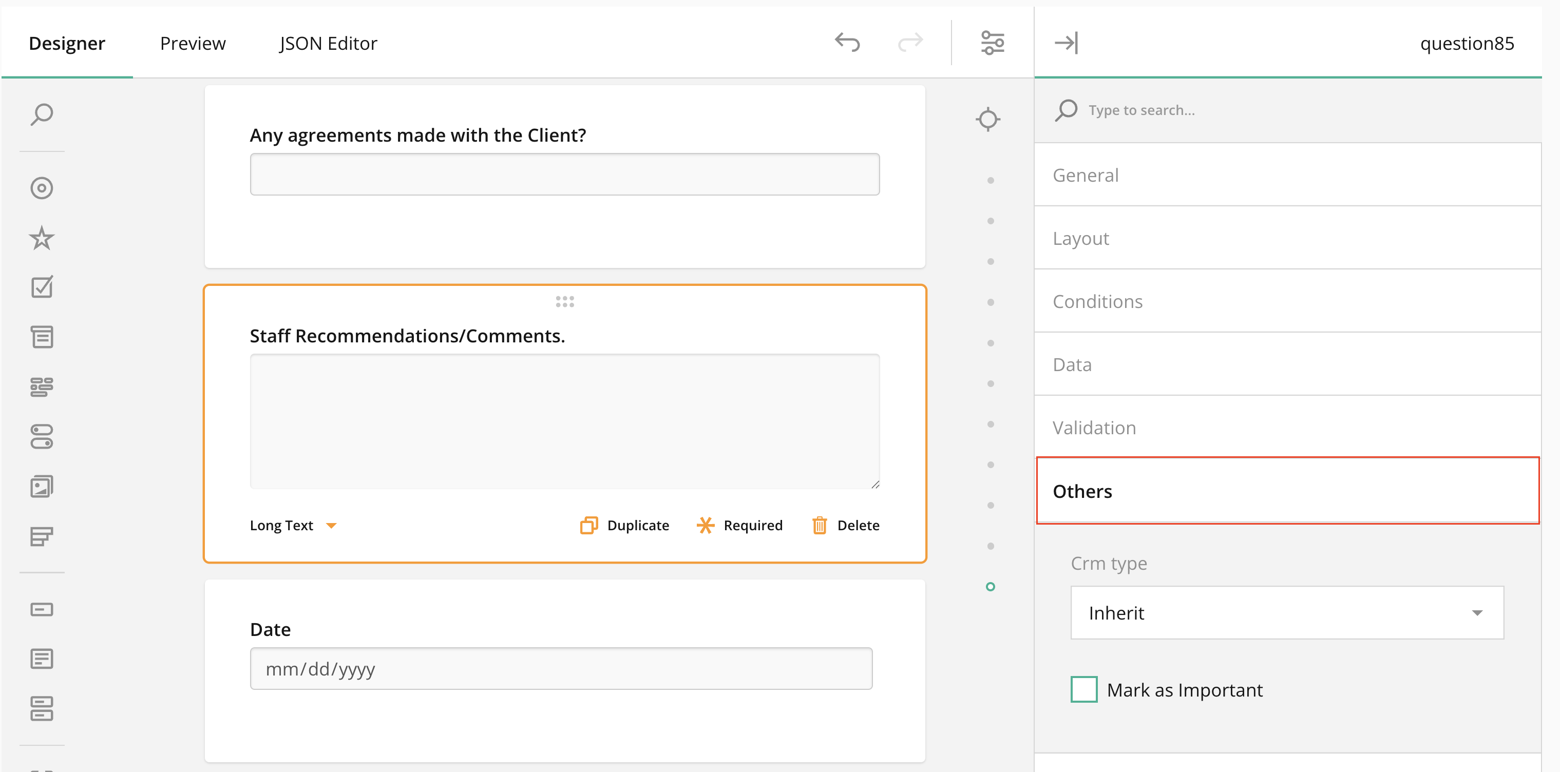 - The field marked important will look like below when working on the assessment, as well as in the PDF.