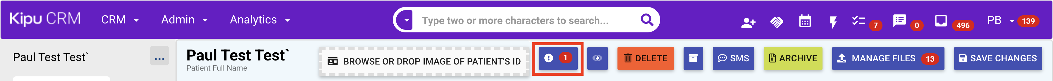 - Open the patient's record and click on the alert icon.