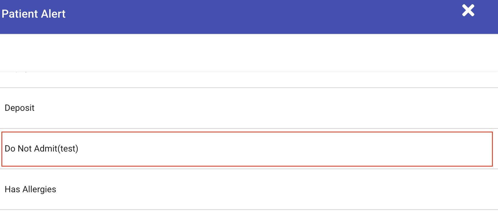 - Reopening the patient’s record will display the alert.