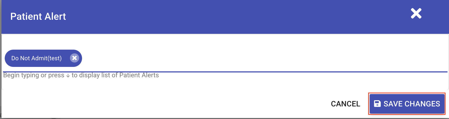 - Once the desired patient alert is selected, click Save Changes.