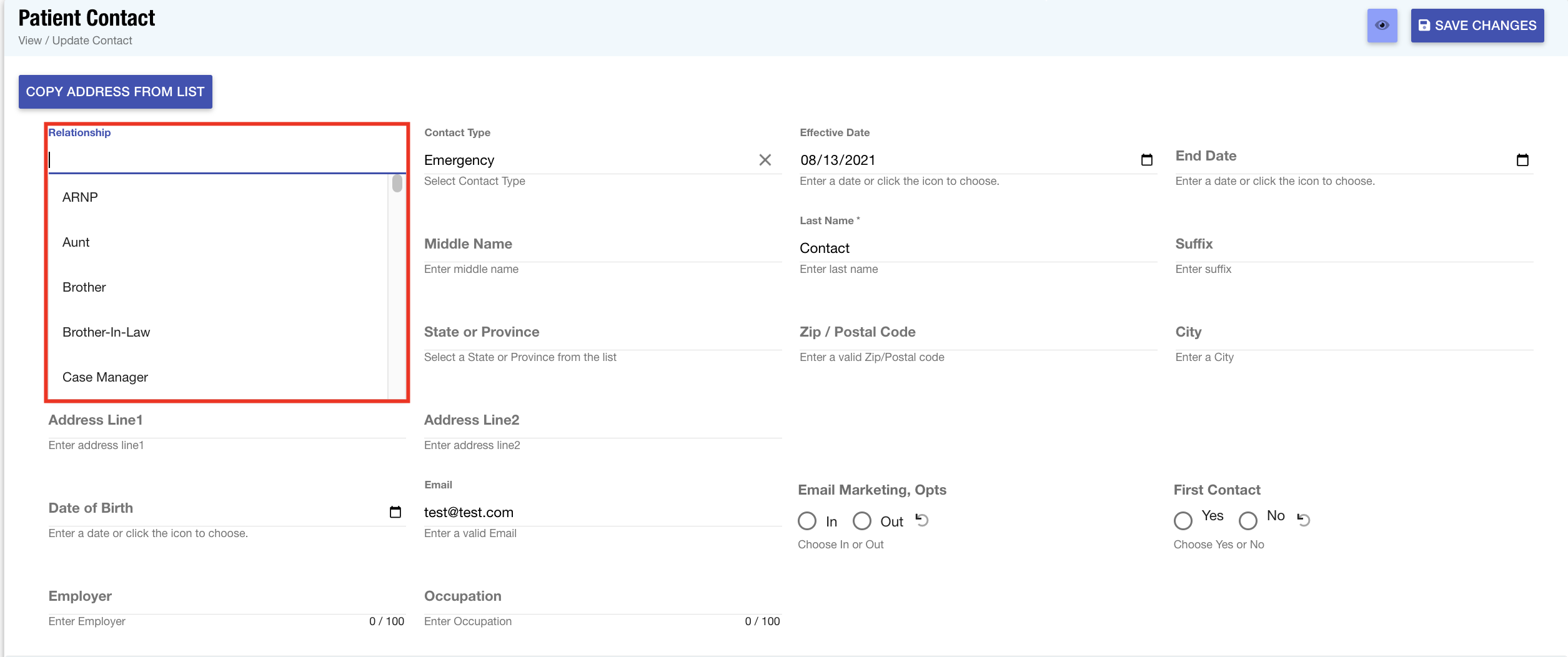 Contact Relationships: Within a prospect's profile, users can add contacts associated with the prospect. This list provides the different relationship options to classify each contact in a more descriptive manner.