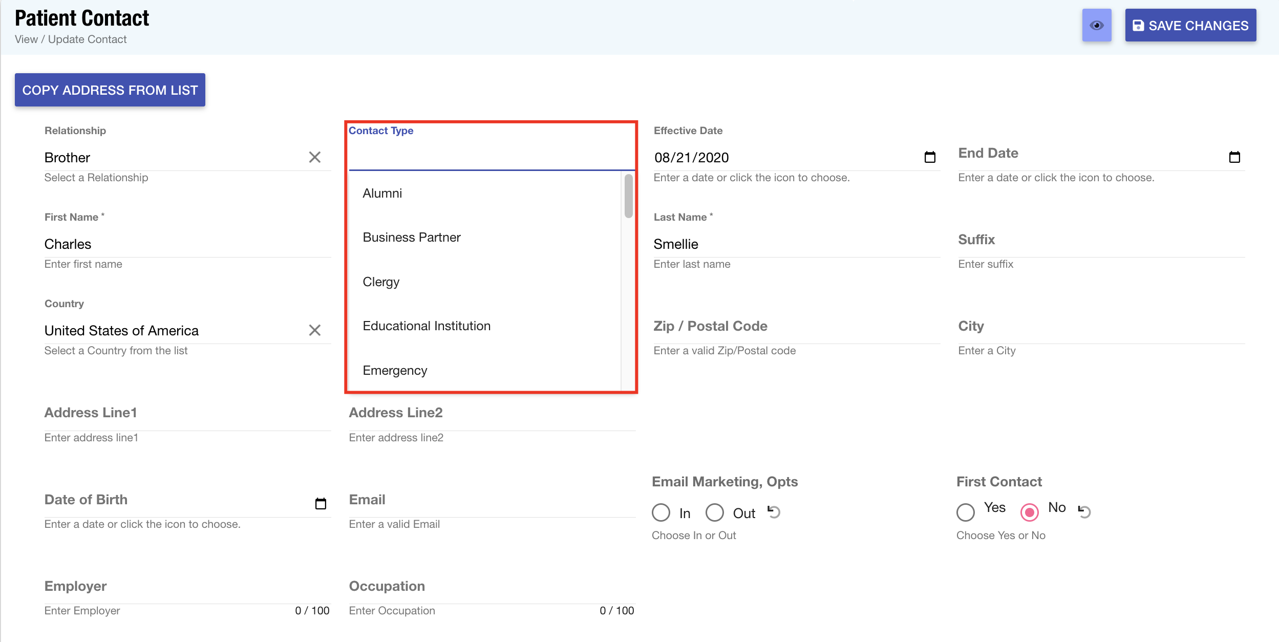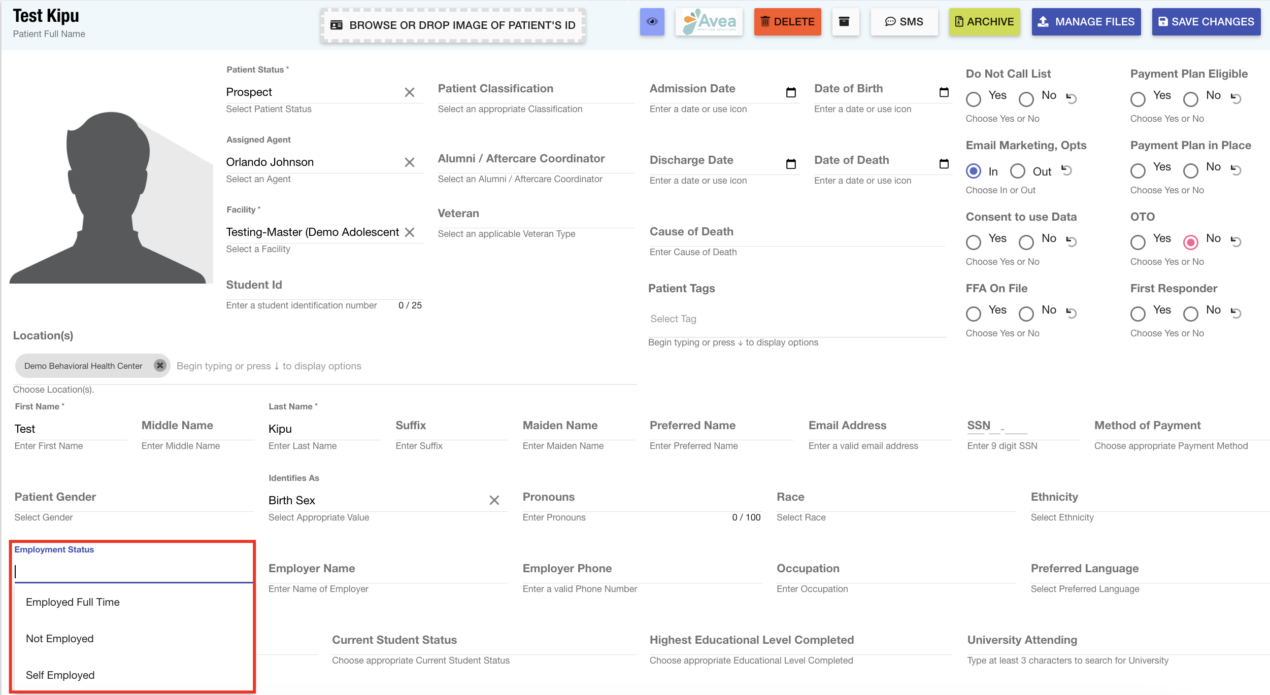 Employment Status: When creating patient records, the employment status field can be utilized to indicate the current job status for the individual.