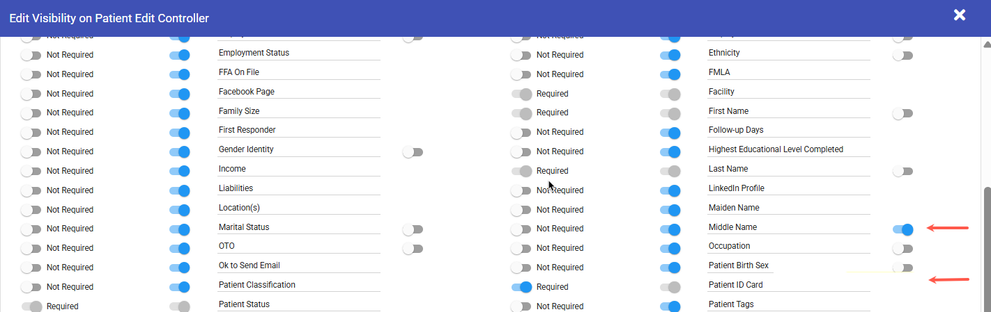 Visibility Controller: New fields have been added to the visibility controller feature. The subscriber's middle name and the patient ID card.