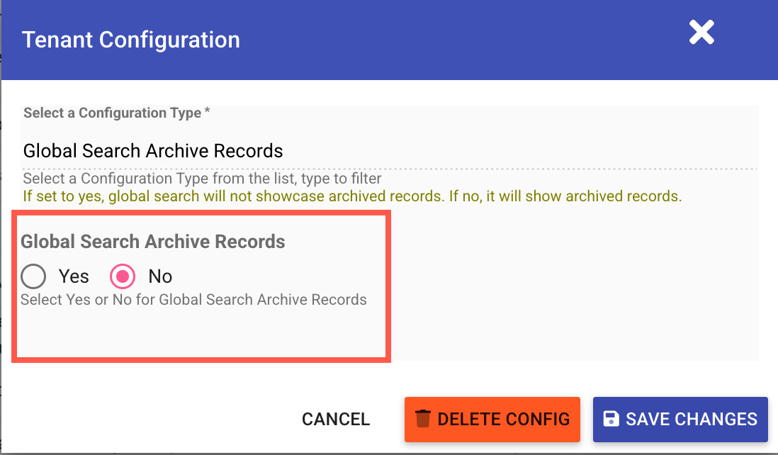 Tenant Configuration: The removal of archived records from the global search is now available in the tenant configuration.