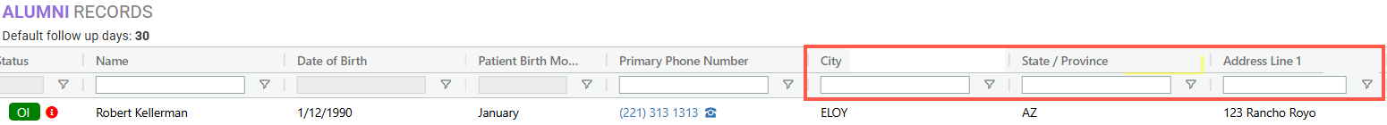 Alumni Processing: Added the patient's address to the alumni processing grid.(ADD TO ARTICLE)