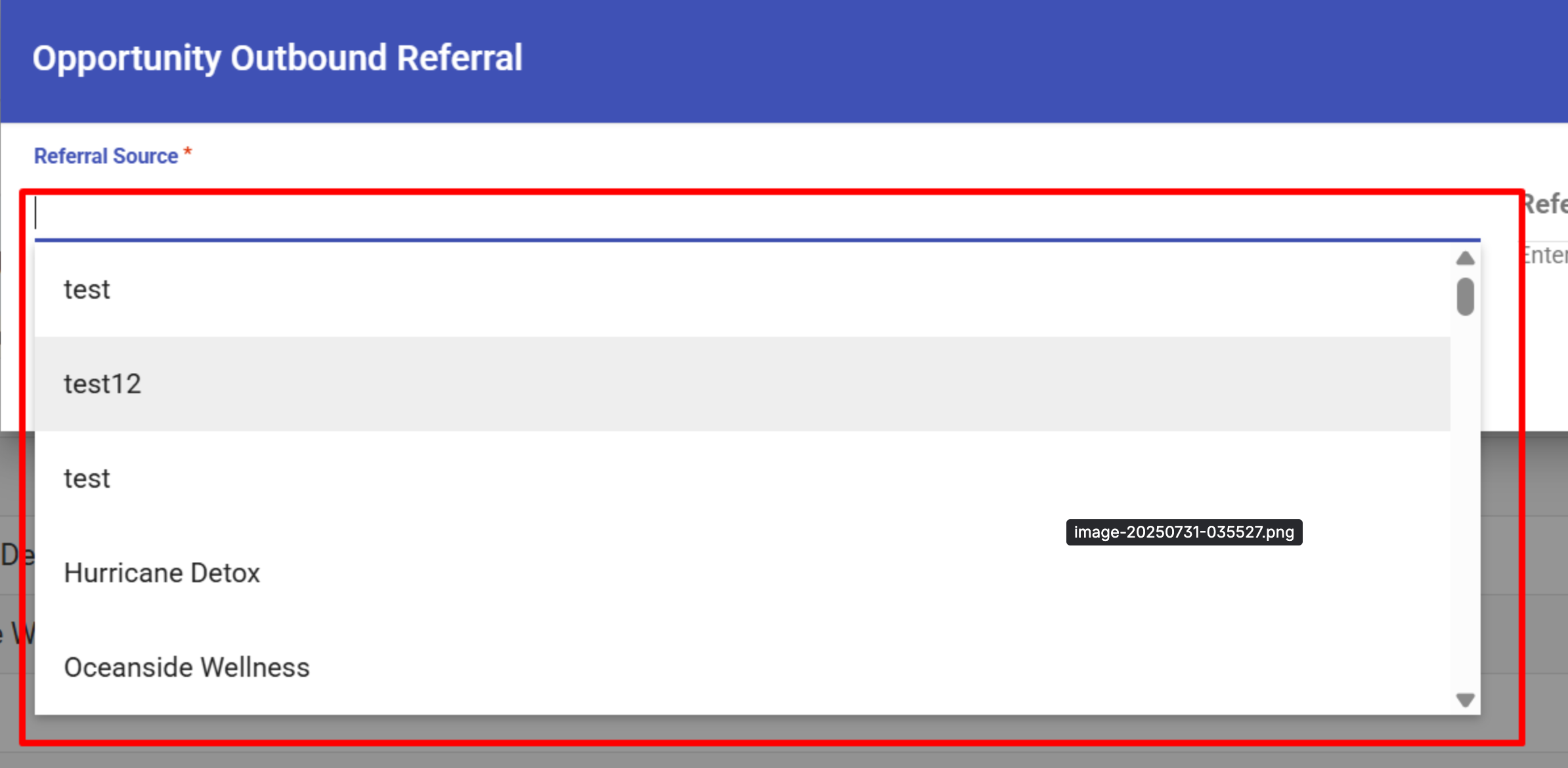Outbound Referrals: User can now add an outbound referral and indicate the date for which the outbound referral was made. They will click the add button and press save.