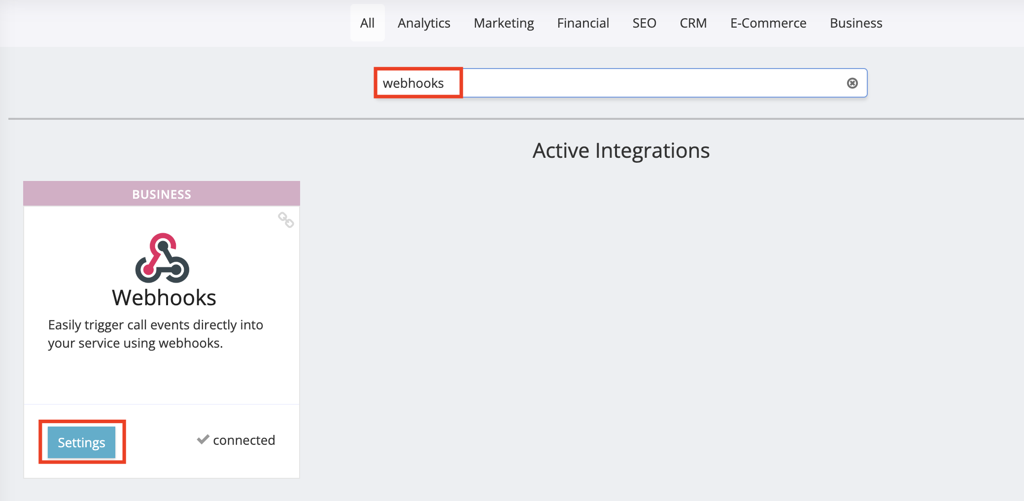 - Click New Webhook to create the first of two webhooks required for this integration.