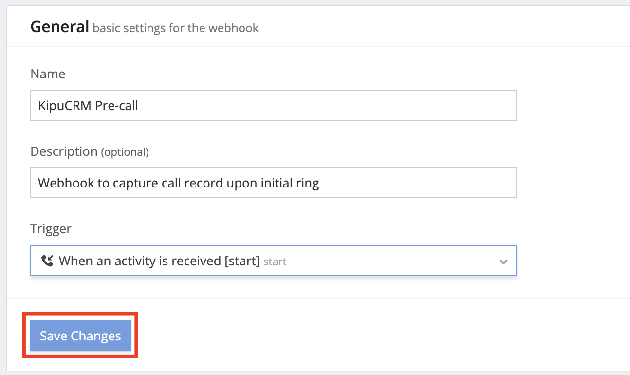 - Callback URL: Input the CTM webhook URL provided to you by the CRM Team