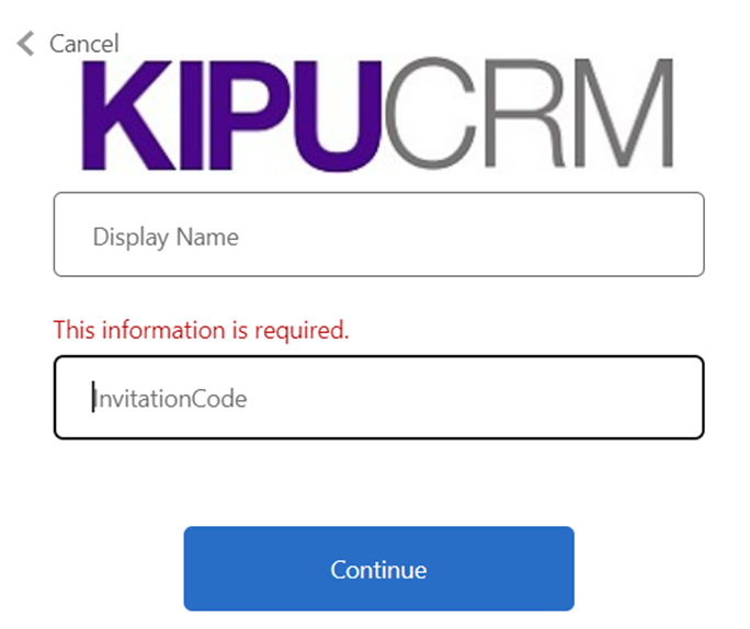 Under Display Name, re-input the invitation code emailed from Automated System<noreply@kipucrm.com>.